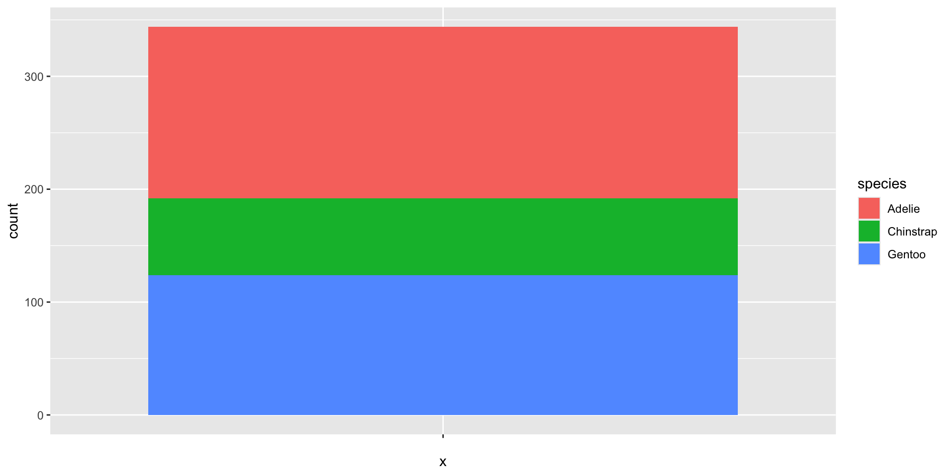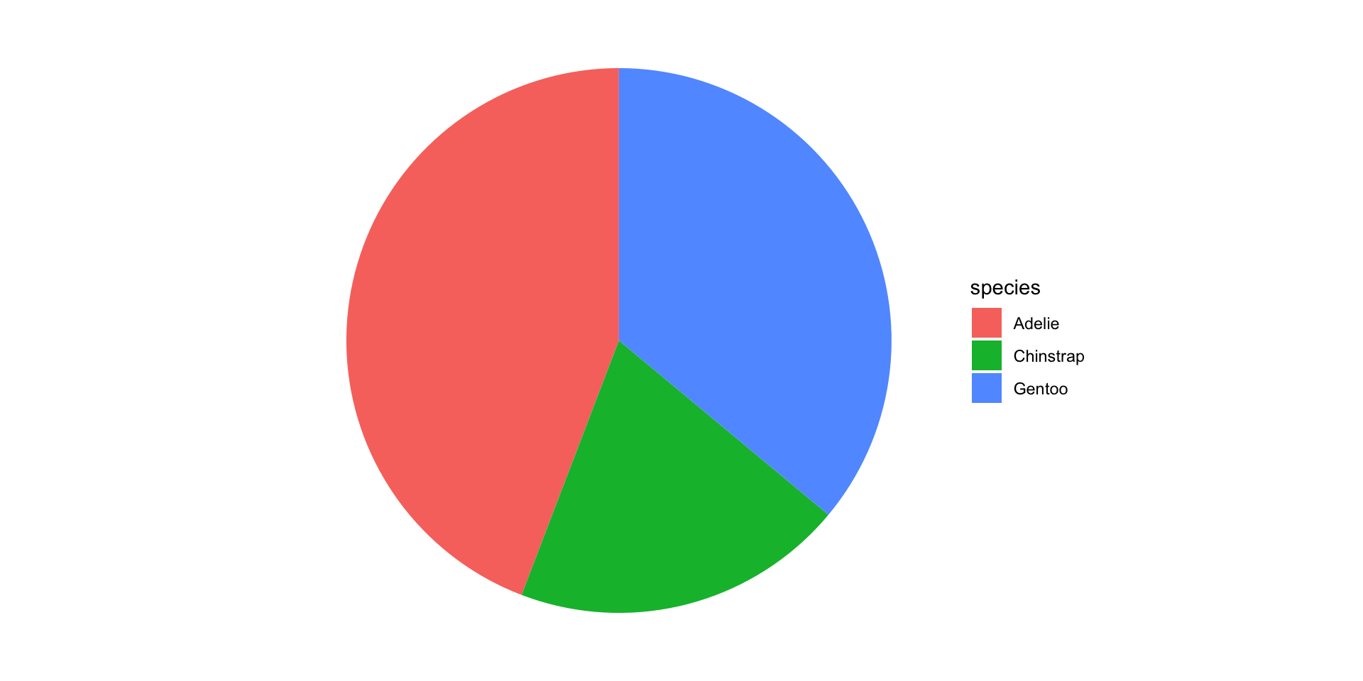 Look at penguins data from the palmerpenguins package, focusing on species: