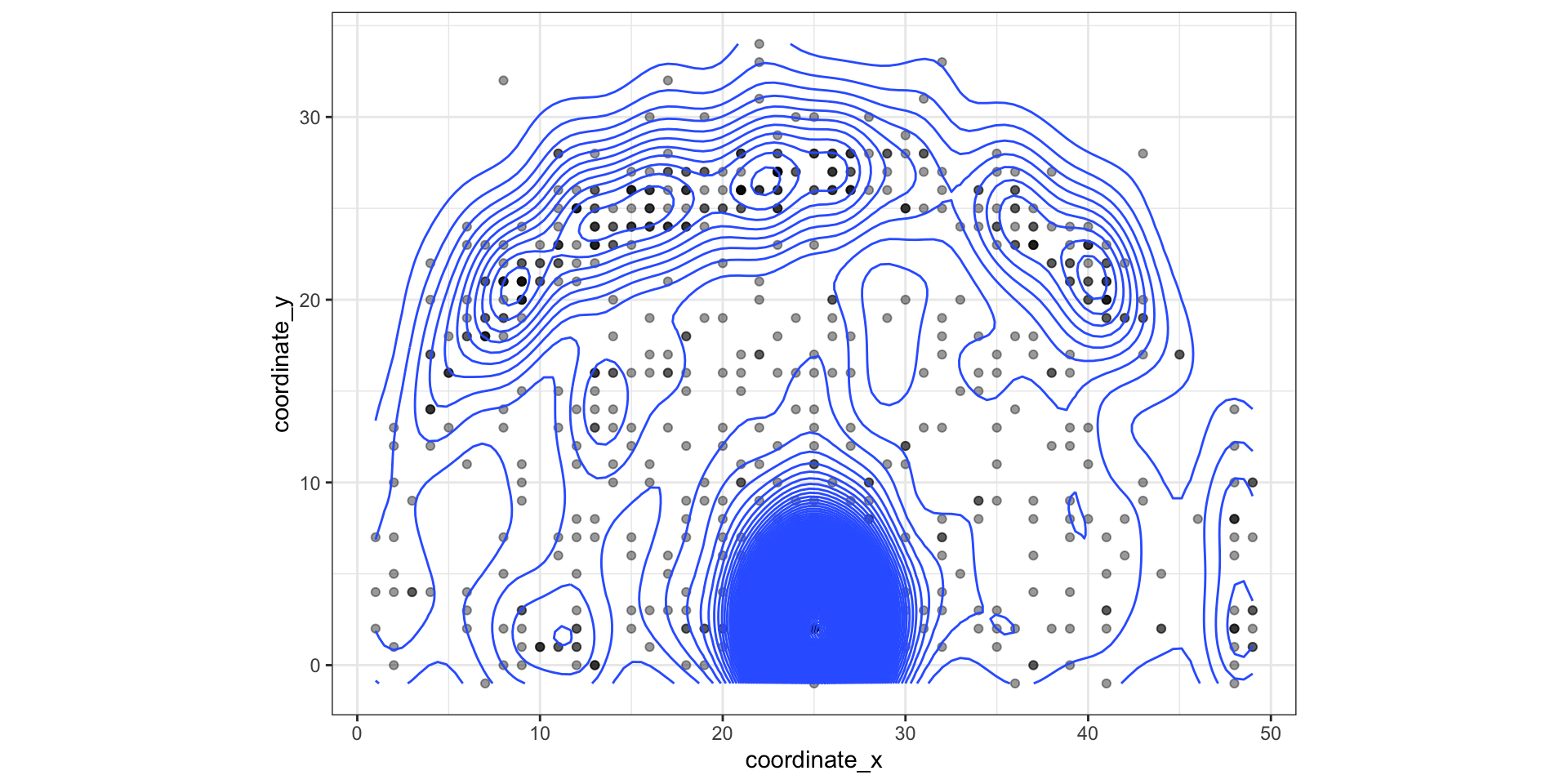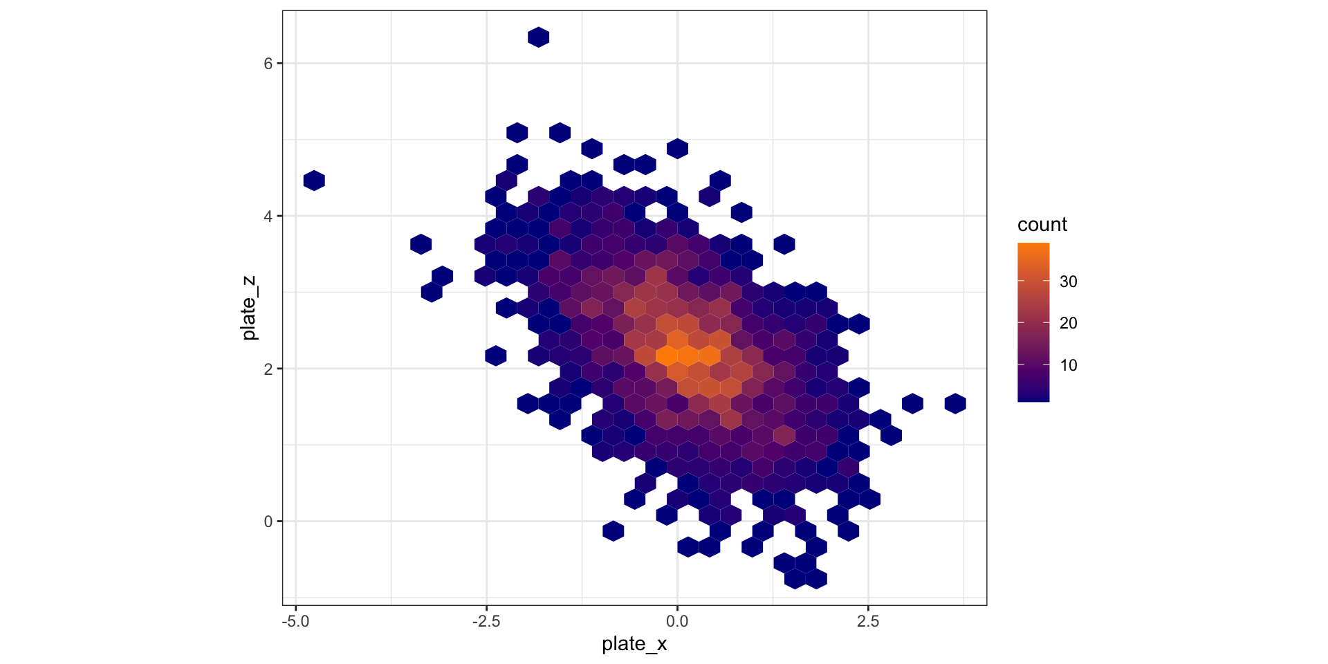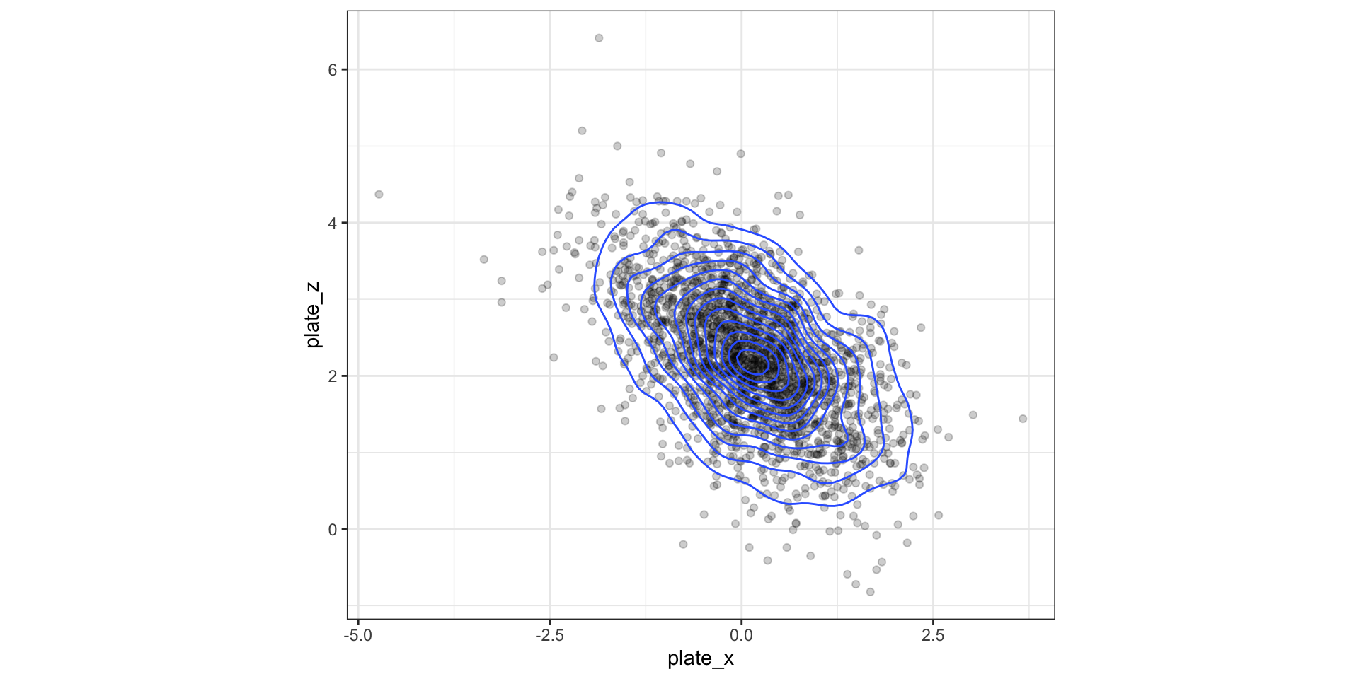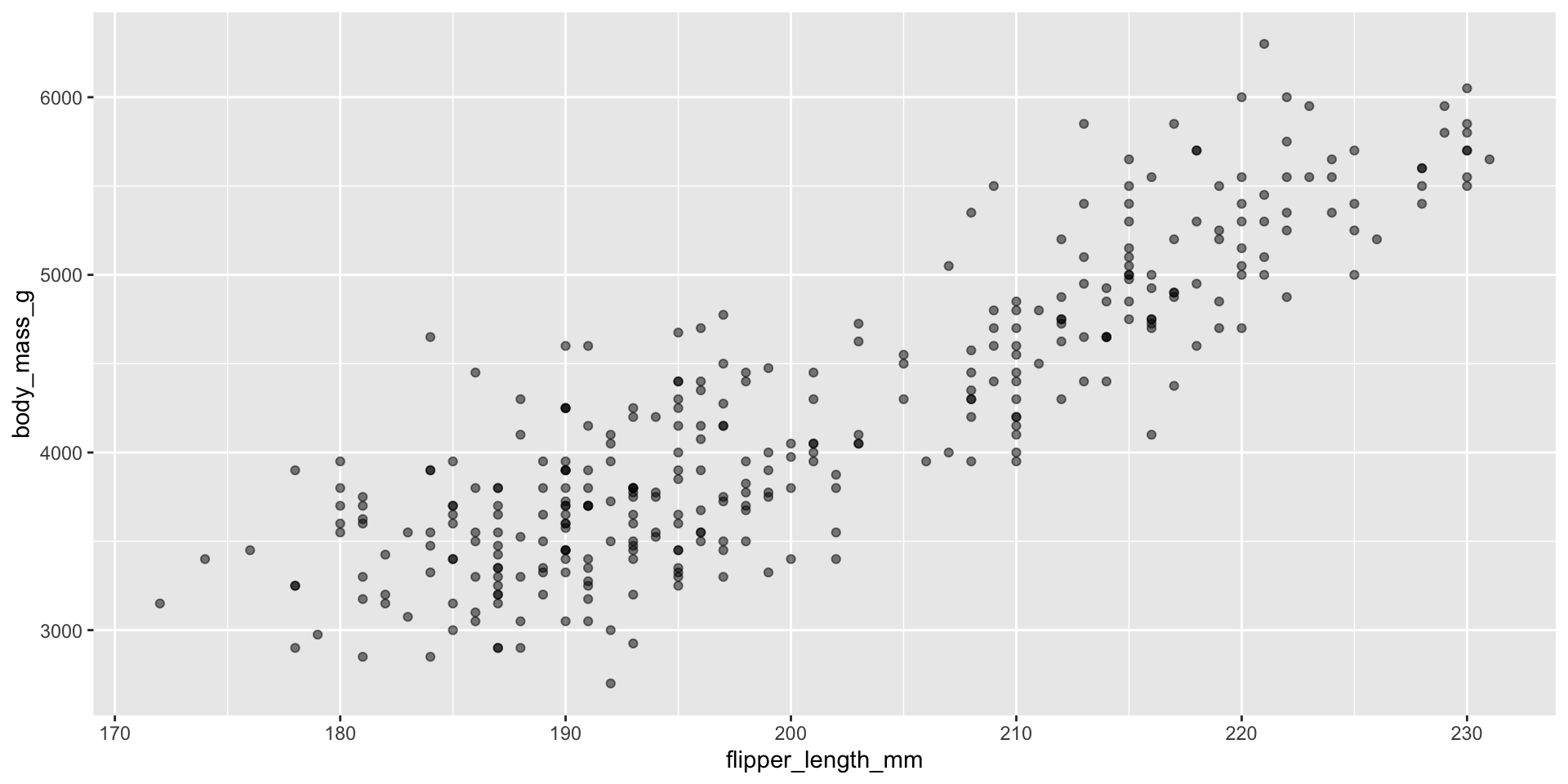 Be careful of over-plotting! May motivate contours or hexagonal bins…