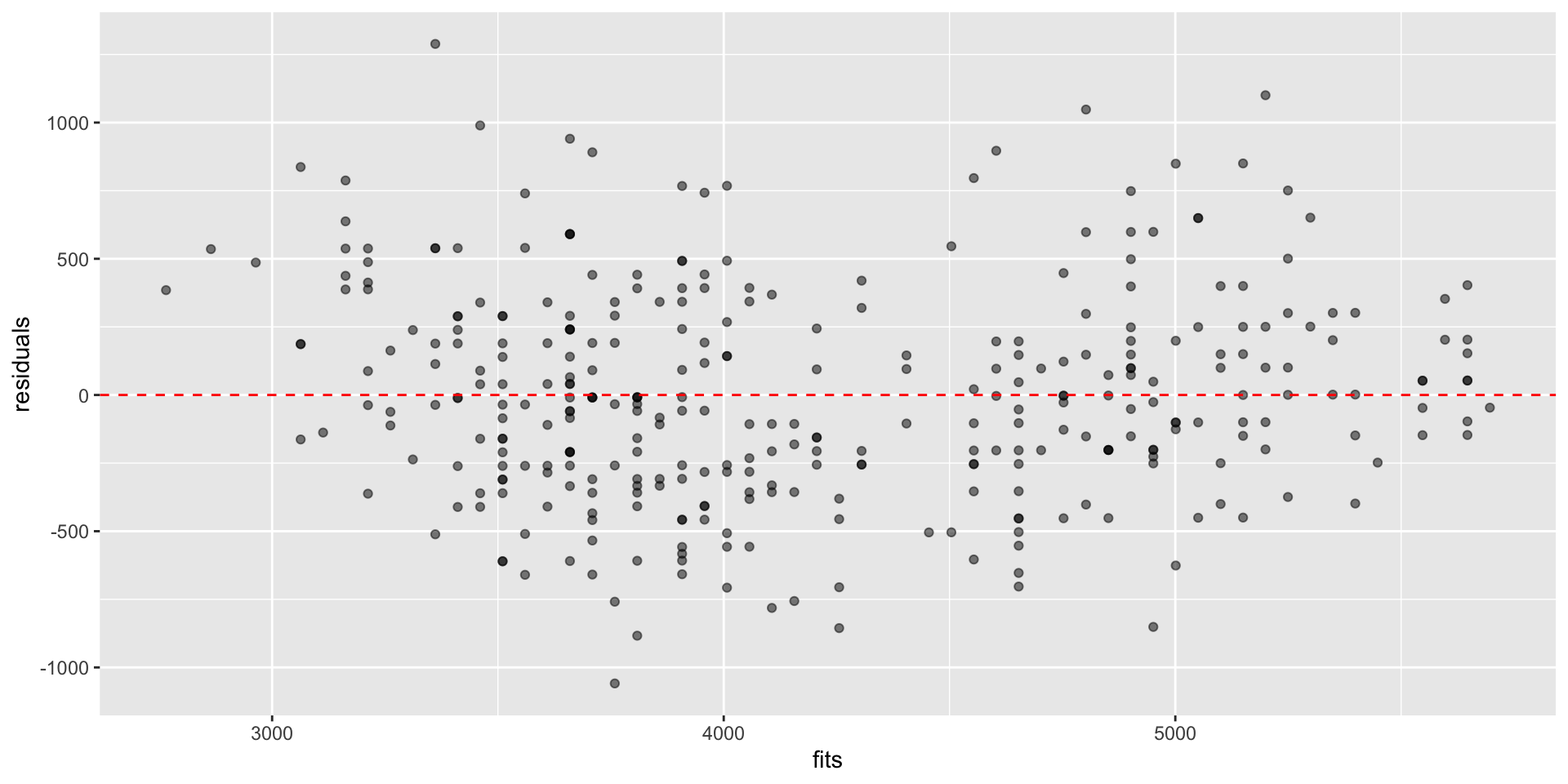 geom_point()alphaLinear regression assumes \(Y_i \overset{iid}{\sim} N(\beta_0 + \beta_1 X_i, \sigma^2)\)