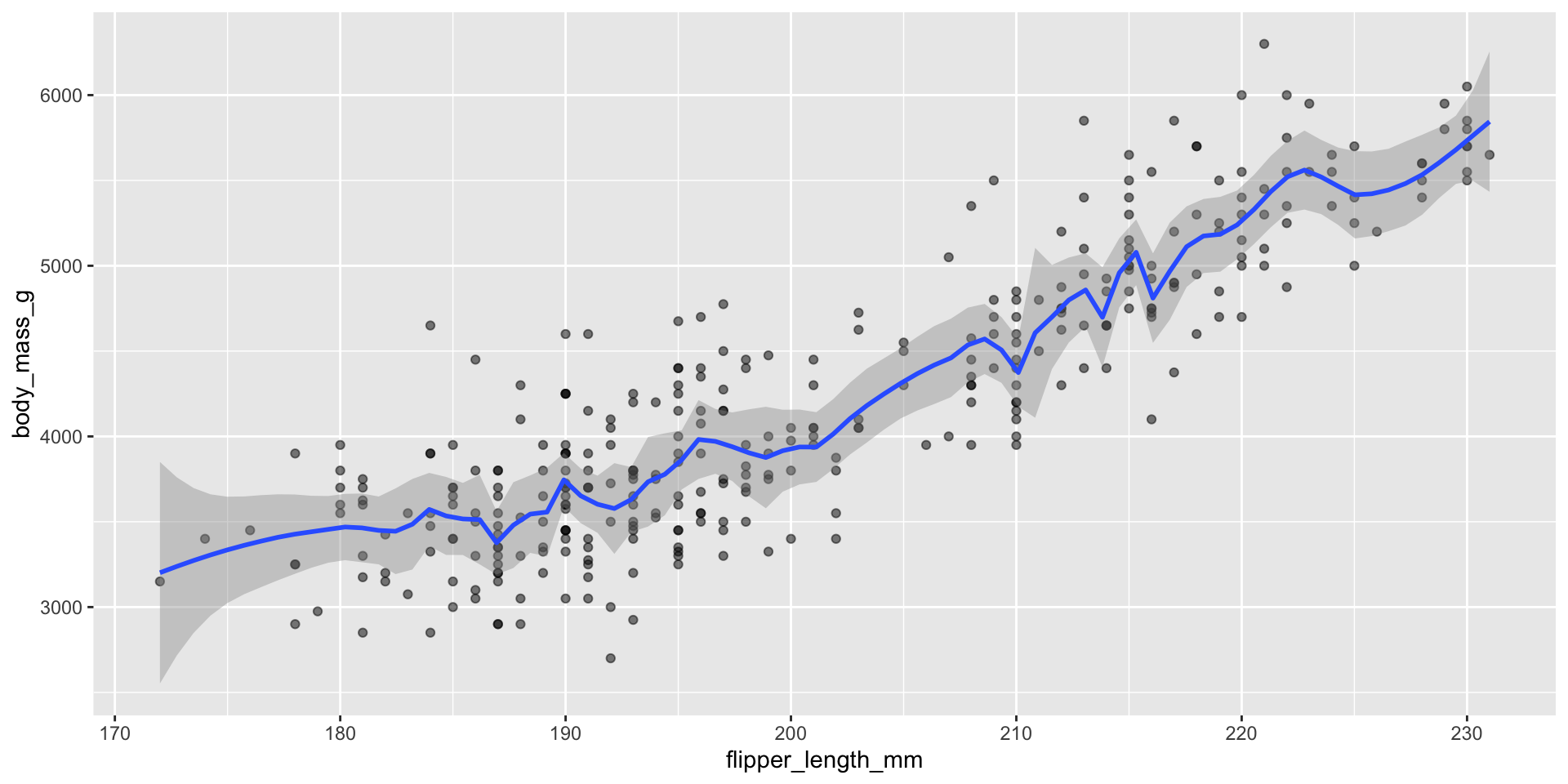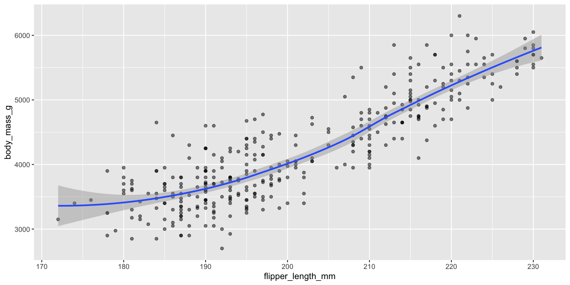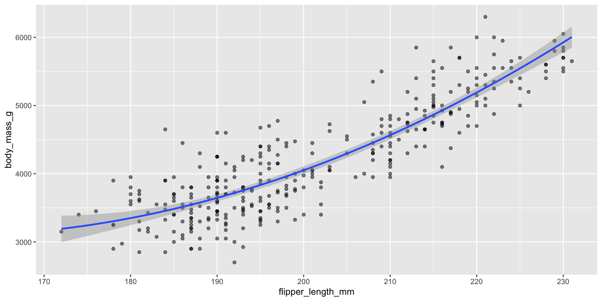 For \(n > 1000\), mgcv::gam() is used with formula = y ~ s(x, bs = "cs") and method = "REML"