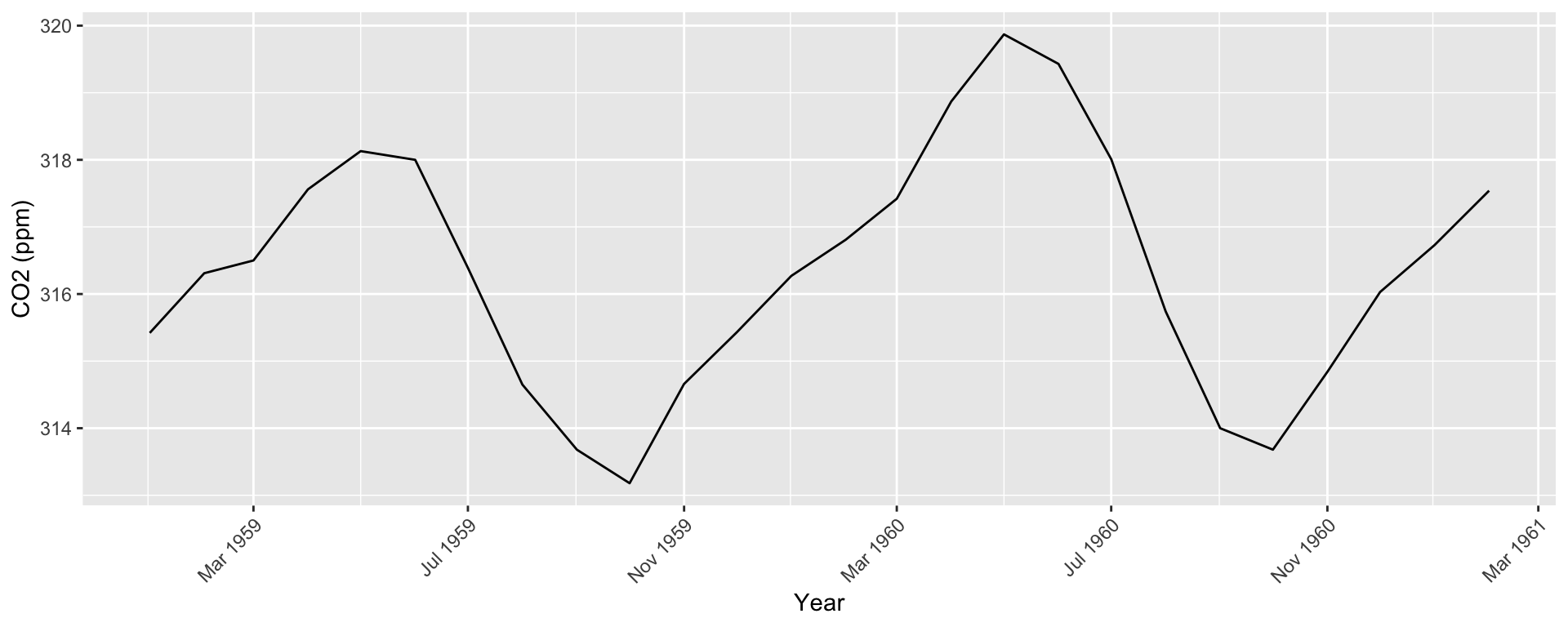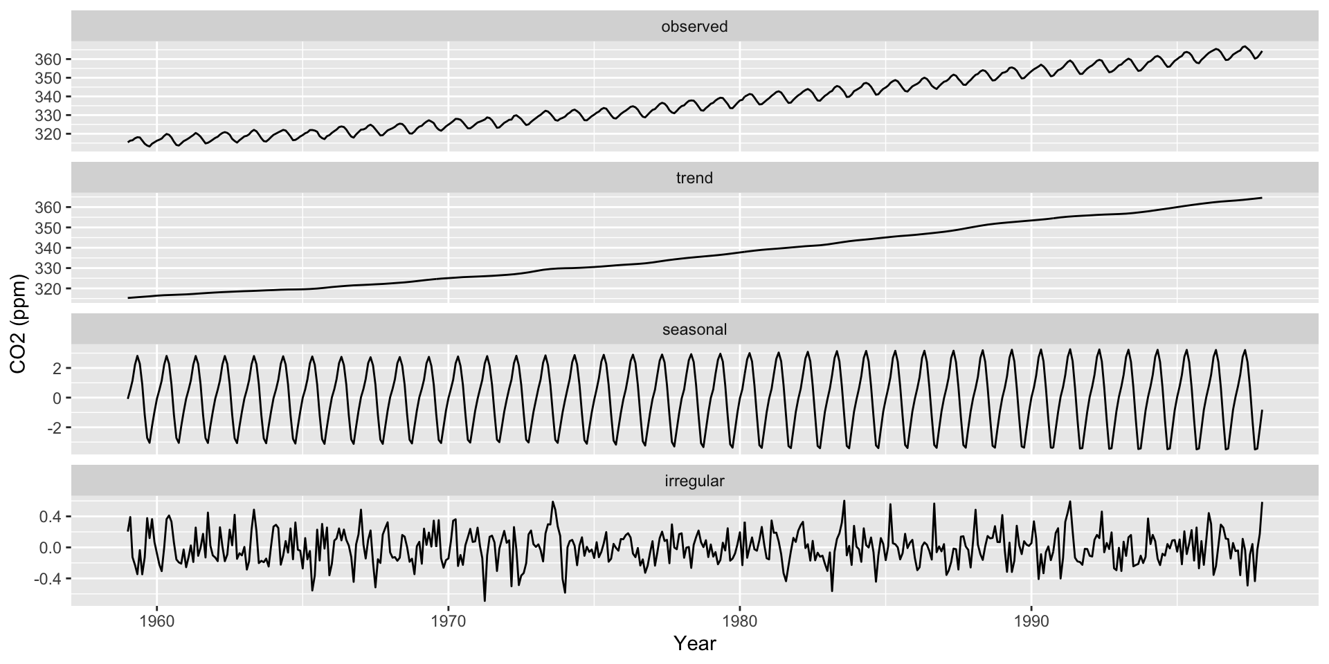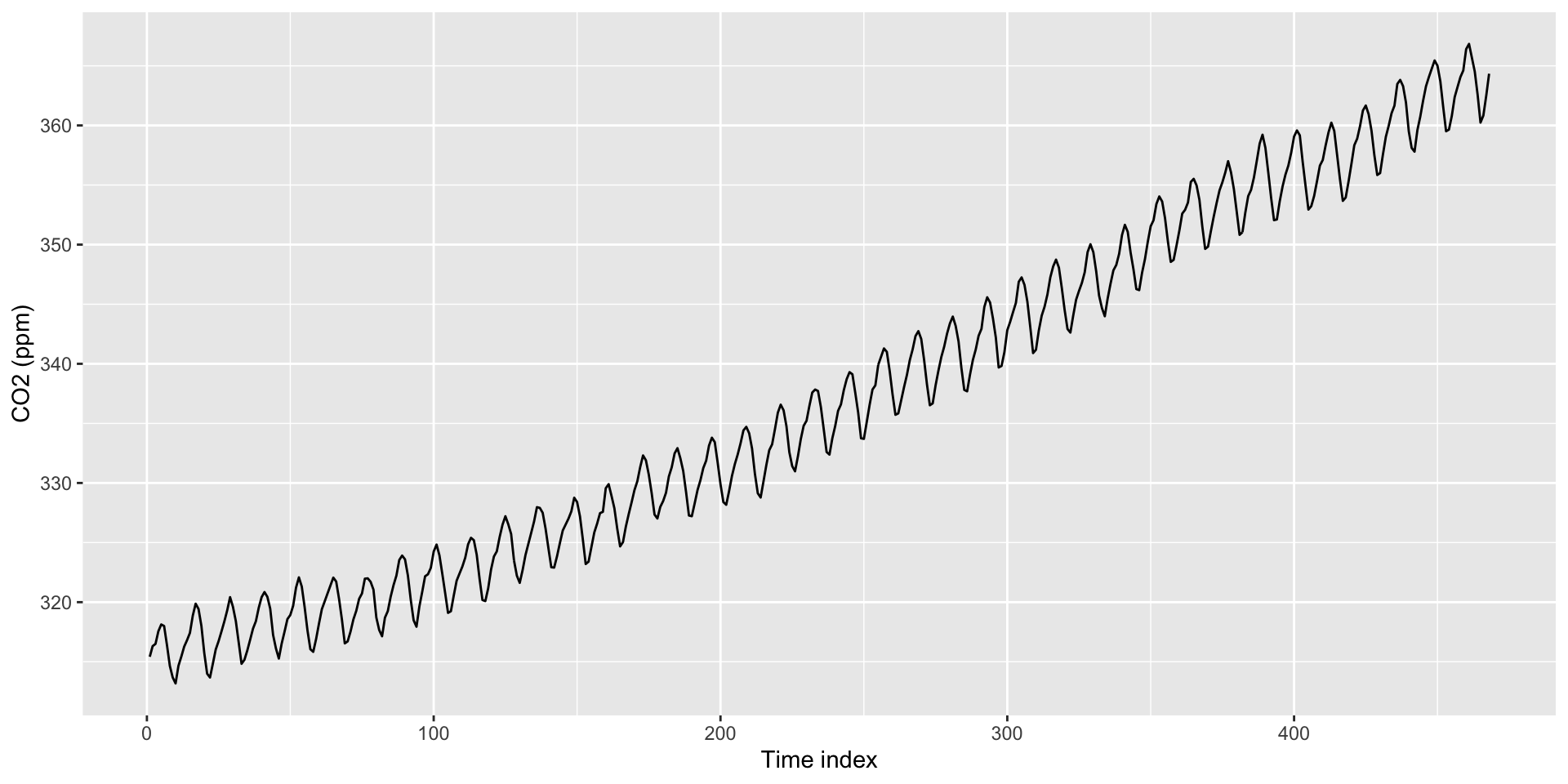 co2: Mauna Loa Atmospheric CO2 Concentration dataset (monthly \(\text{CO}^2\) concentration 1959 to 1997)