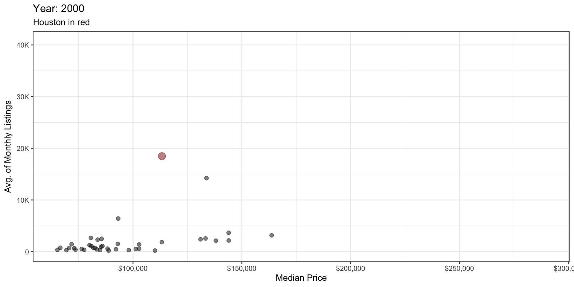 subtitle = "Houston in red", title = "Year: {frame_time}") +